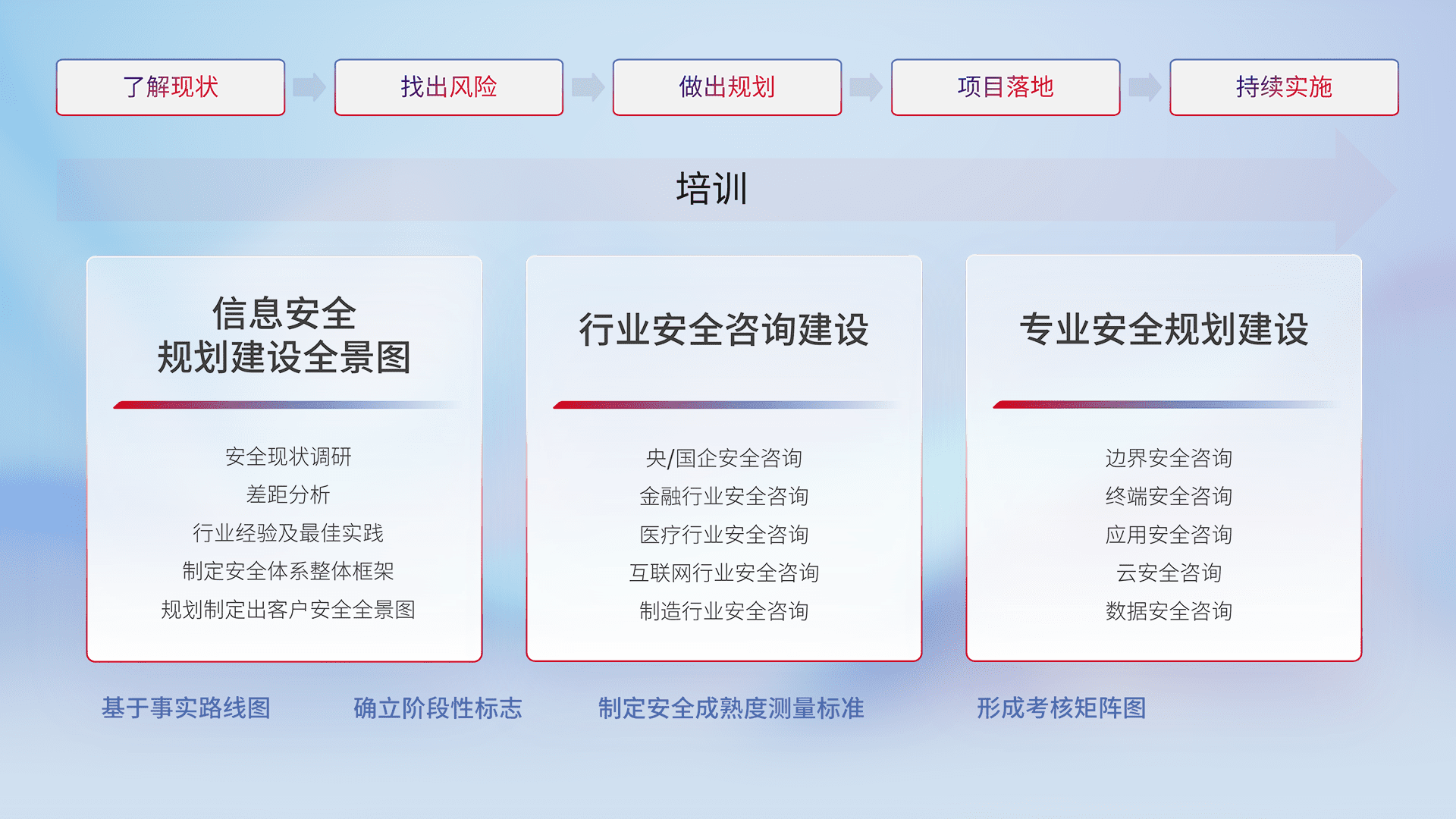 通过专业的法律咨询解读、、合规架构体现、、、差异化解决方案、、测试实施支持等服务,,为客户量身打造等保合规体系。。。